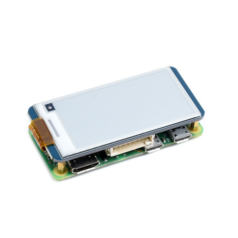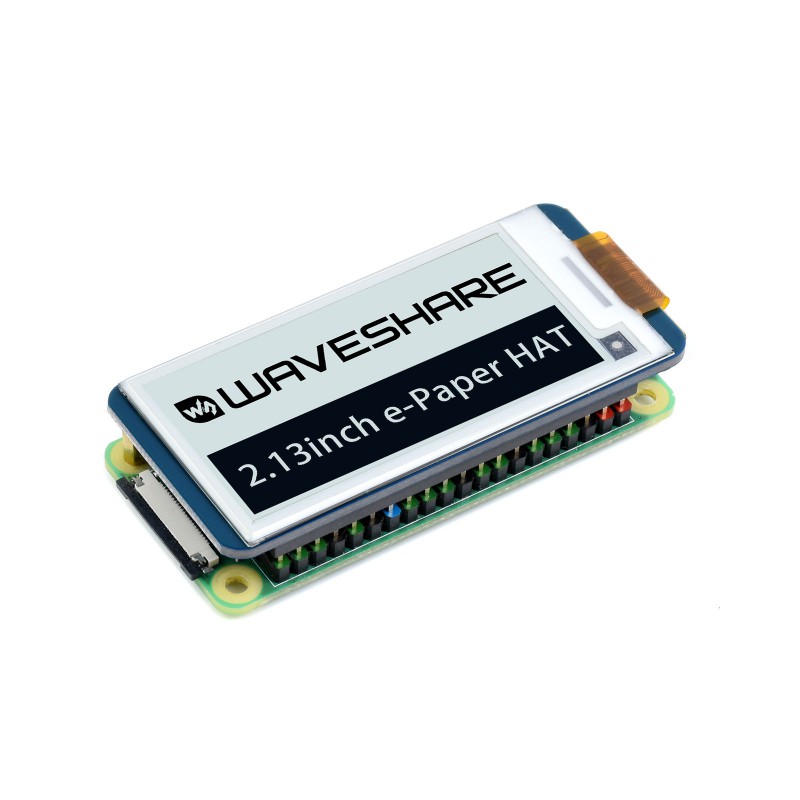2.13-tums e-Paper HAT. e-Ink-display modul anpassad för Raspberry Pi med 40-stifts GPIO-kontakt. Displayen använder e-Ink-teknik som reflekterar omgivande ljus för att ge en pappersliknande visning av text och grafik utan backlight vilket innebär låg energiförbrukning eftersom energi endast används vid uppdatering av innehållet. Modulen kommunicerar via ett SPI-gränssnitt och är kompatibel med både 3.3 V och 5 V logiknivåer via inbyggd nivåomvandling. Den breda betraktningsvinkeln ger god läsbarhet från många vinklar. Stöd för partiell uppdatering gör att innehållet ändras effektivt då endast delar av skärmen behöver uppdateras. Displayen lämpar sig för applikationer som statiska informationsdisplayer, etiketter, instrumentpaneler och andra system där lång läsbarhet och låg effektförbrukning är viktigt. Levereras med kopplingskabel (dupont) för SPI samt distansskruvar.