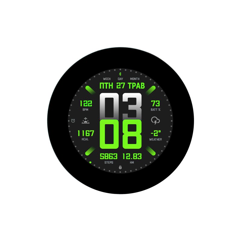 Kortet har en rund 2.1-tums IPS-display med kapacitiv touch och upplösning på 480 x 480 pixlar. Det ger tydlig grafik och responsiv användarinteraktion. Displayen använder SPI-gränssnitt medan touchpanelen kommunicerar via I2C.