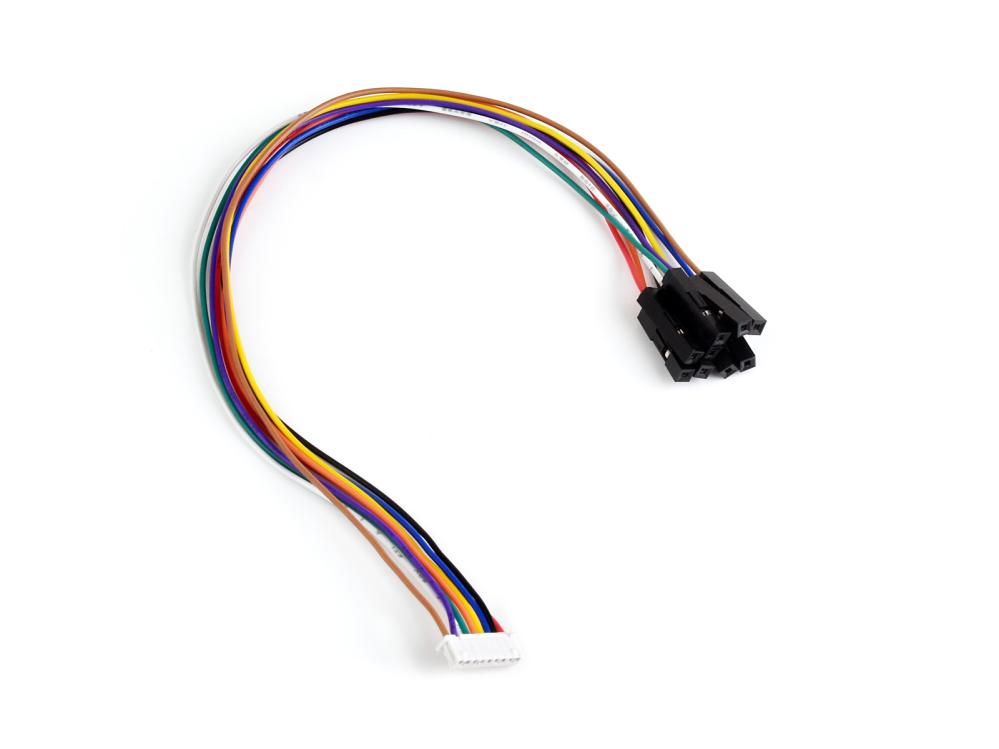 Levereras med kopplingskabel till 9x dupont hylsor (används för andra mikrokontrollers än Raspberry Pi) samt skruvar och distanser.