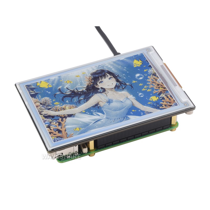 Levereras med HAT+ drivrutinskort och är direkt kompatibel med Raspberry Pi via standardiserad 40-pins GPIO-header. SPI-gränssnittet gör den även lämplig för integration med exempelvis Arduino, STM32 och andra mikrokontrollers.