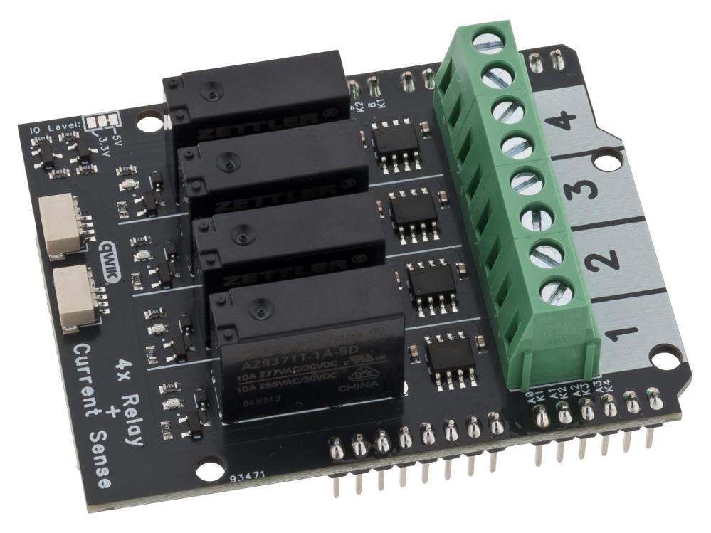 Kretskortet har fyra högkvalitativa 10A-reläer från Zettler samt isolerad, dubbelriktad strömmätning för varje relä. Modulen är byggd i UNO-shield-format och fungerar med alla Arduino UNO-kompatibla kort.