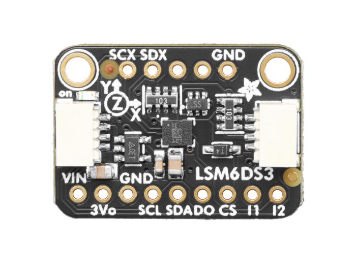 Kortet bygger på ST:s LSM6DS3TR-C och levereras med inbyggd regulator och nivåanpassning, vilket gör att det kan användas med både 3 V- och 5 V-logik. Tack vare Qwiic-kontakter kan modulen anslutas snabbt via I2C utan lödning. Stiftlister medföljer (ej förmonterade) om man önskar ansluta på annat sätt. I2C-adressen kan ändras vilket gör det möjligt att använda flera sensorer på samma I2C-buss. Sensorn erbjuder även avancerade funktioner som FIFO-buffert och händelsedetektering.