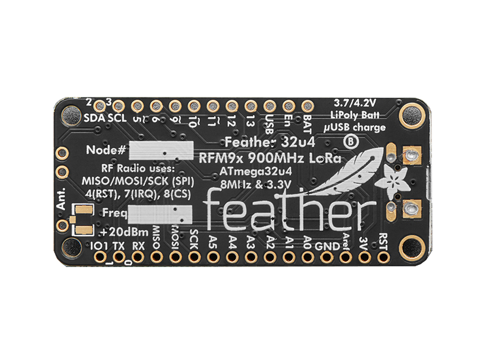 På kortet finns en LoRa (Long Range) RF-modul, RFM95, för trådlös kommunikation via det öppna 868MHz ISM-bandet. Perfekt för att skapa trådlösa sensornät med längre räckvidd än bluetooth och lägre strömförbrukning än WIFI.