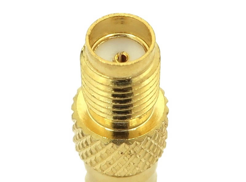 RF-adapter SMB-hona till SMA-hona. Guldpläterad mässingskropp. Guldpläterad mässingscentrumstift. PTFE-dielektrikum. Adaptern är tillverkad av massiv mässing som är precisionsbearbetad och guldpläterad för att ge högsta prestanda med små förluster. Impedans: 50 ohm.