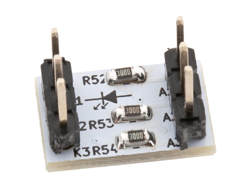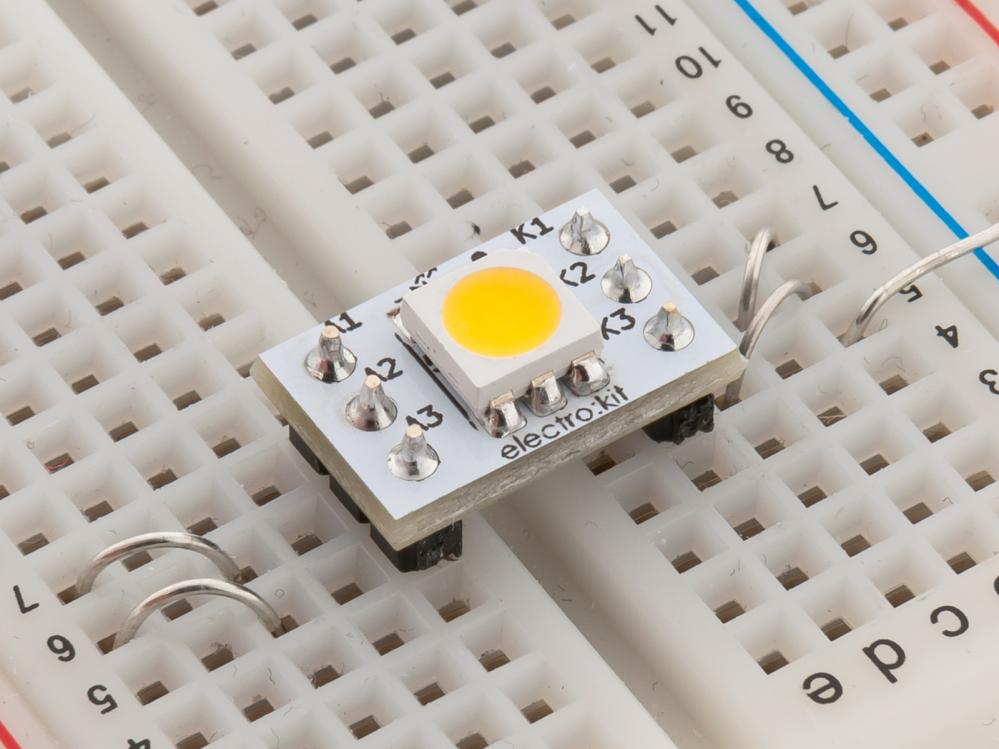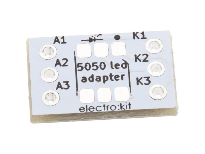 Adapterkort för att använda ytmonterade lysdioder (SMD-5050) med kopplingsdäck, experimentkort och direktlödd kabel. In- och utgångarna är anpassade för kapslar med tre integrerade motstånd (se relaterade produkter).