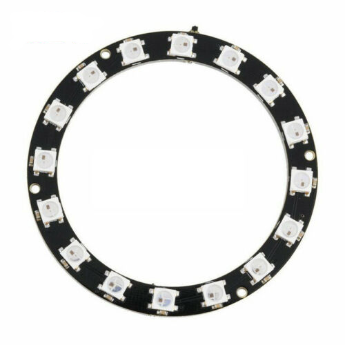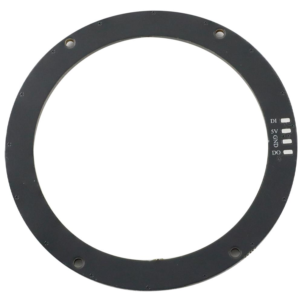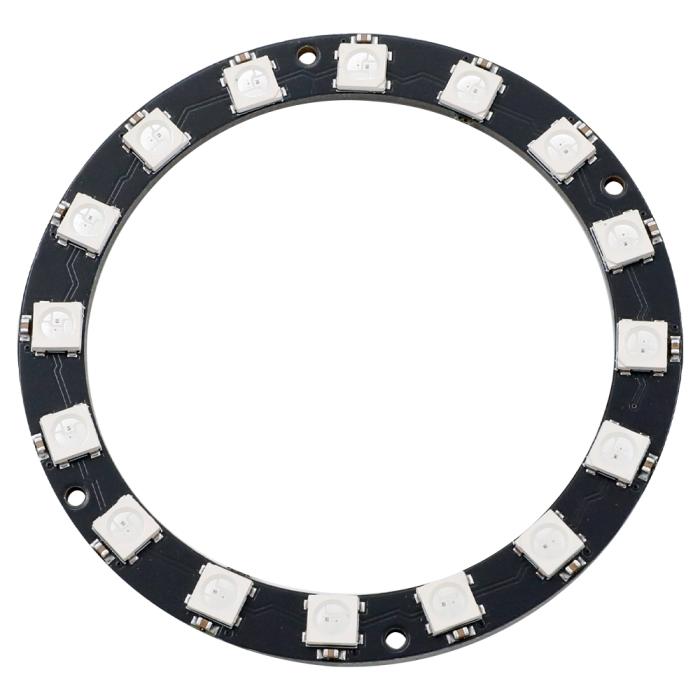 Neopixel-kompatibel RGB LED-ring med 16 individuellt styrbara RGB-lysdioder. Varje lysdiod har en inbyggd seriekontroller (WS2812B), på så sätt styrs alla LED via en enkel datalinje. Det möjliggör exakt färgstyrning via en enda datalinje från en mikrokontroller. Du kan enkelt skapa avancerade ljusmönster och färgövergångar. Ringen har en diameter på 60 mm och är lämplig för projekt som t.ex. indikatorer, visuella effekter eller dekorativa installationer. Ringmodulen kan även kedjekopplas, flera ringmoduler kopplas efter varandra på samma datalinje.
