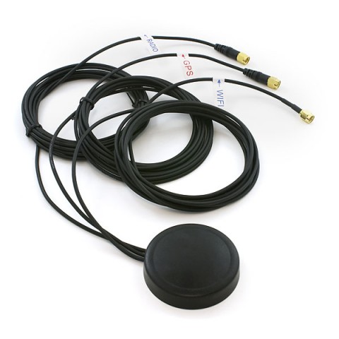 Multibandsantenn för GPS, GSM och WiFi, i puckutförande. Enkel att montera på biltak eller apparatskåp tack vare att den har magnetfäste.
