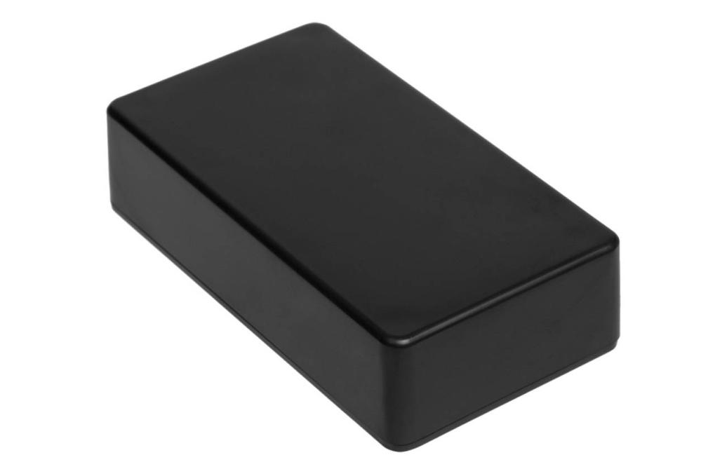 Universell inbyggnadslåda / kapsling avsedd för att skydda kretskort, moduler, kontrollenheter eller prototyper. Lådan är kompakt och robust. Består av två delar (botten och lock) som skruvas ihop med fyra medföljande skruvar.