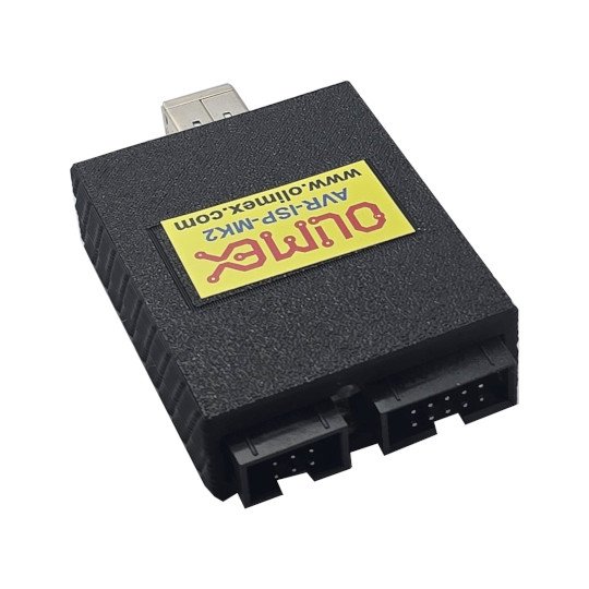 Olimex AVR-ISP-MK2 är en USB-programmerare för 8-bitars AVR-mikrokontrollers som är kompatibel med AVRISP mkII-protokollet och stöder flera olika programmeringsgränssnitt inklusive ICSP, PDI och TPI. Den är avsedd för både utveckling och produktion där man behöver programmera Flash- och EEPROM-minnen samt konfigurationsbitar direkt på kretskortet utan att mikrokontrollern behöver tas ur applikationen.