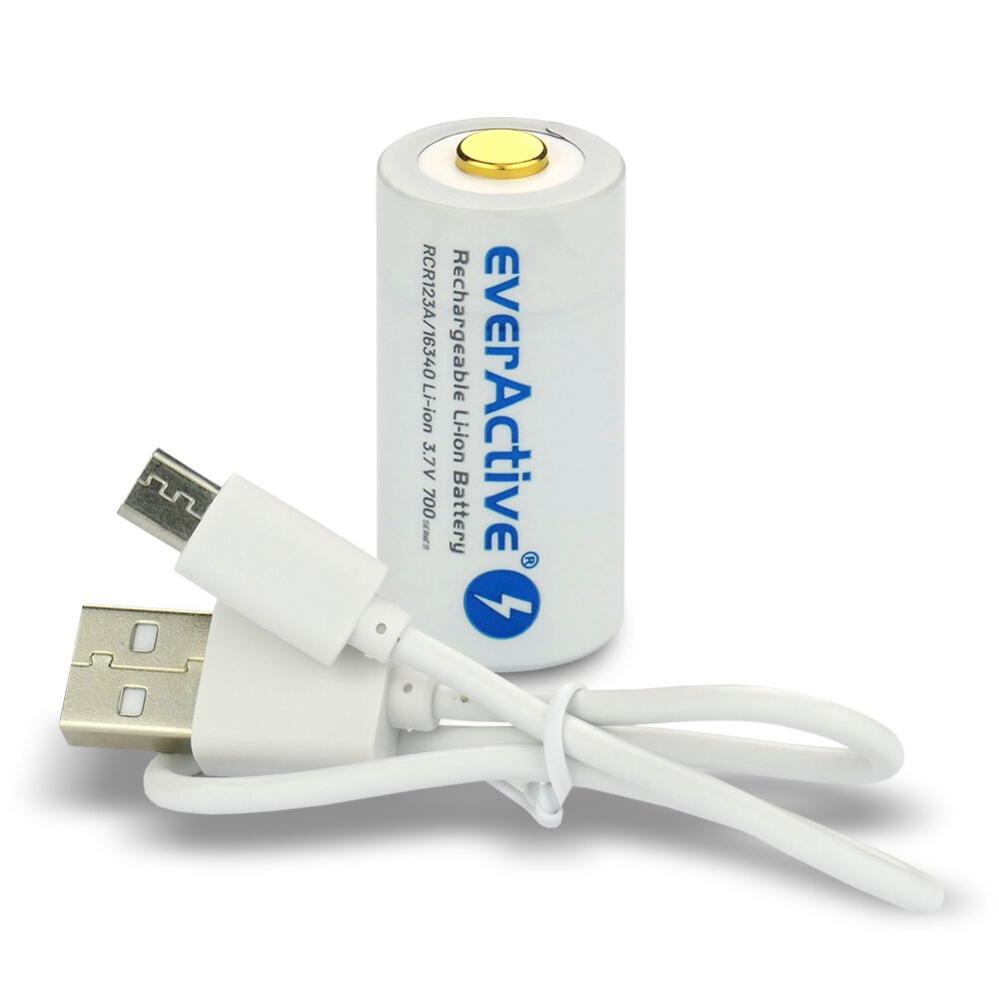16340 Li-Ion 3.7 volt batteri med inbyggd ladd- och skyddskrets. Avsedd för ficklampor, sensorer, etc. Batteriet har ett micro-USB ladduttag och laddas direkt från USB-laddare (ingår ej). USB-laddkabel medföljer. LED på batteriets topp indikerar när laddning pågår och när laddningen är avslutad. Batteriet klarar konstant urladdning med 1 A.