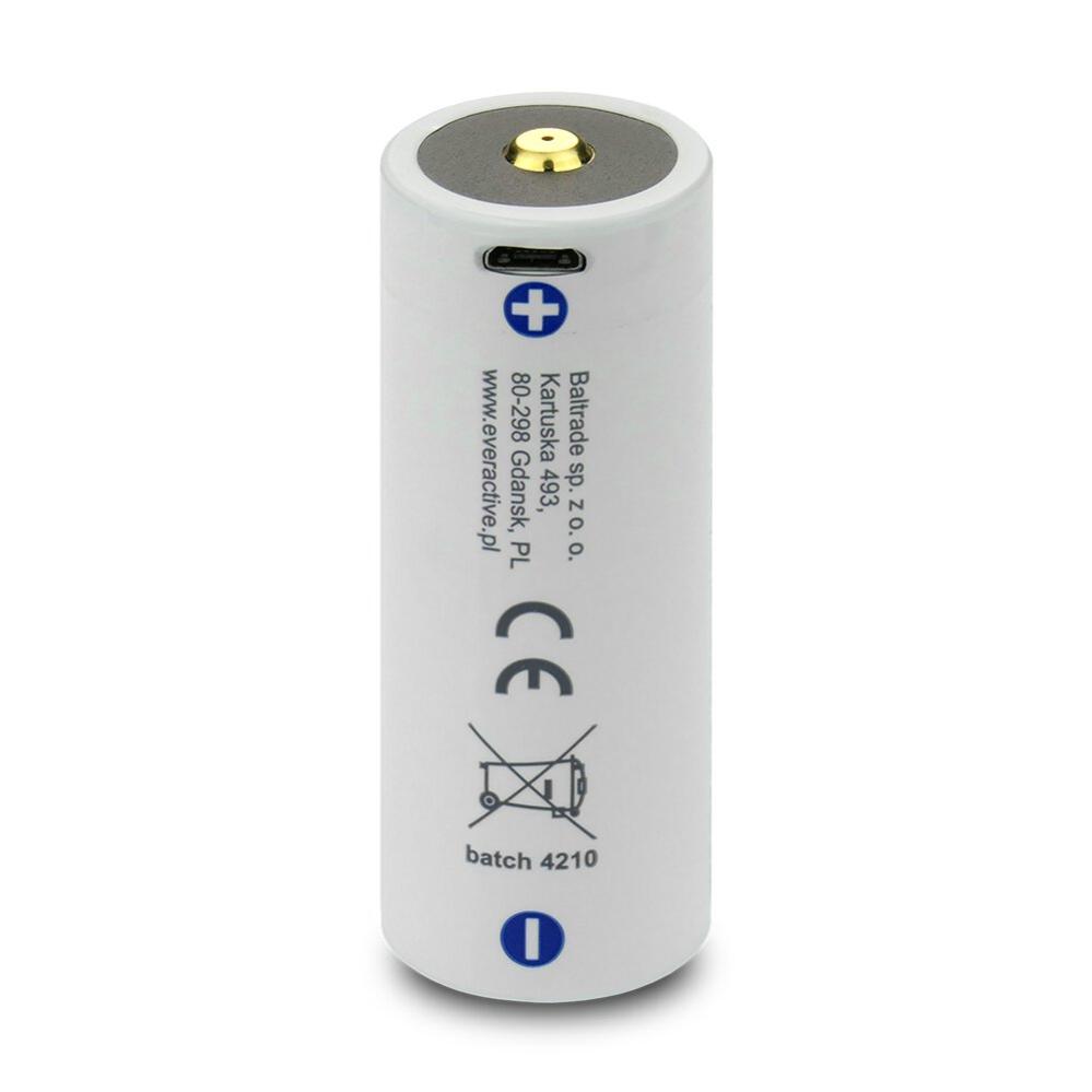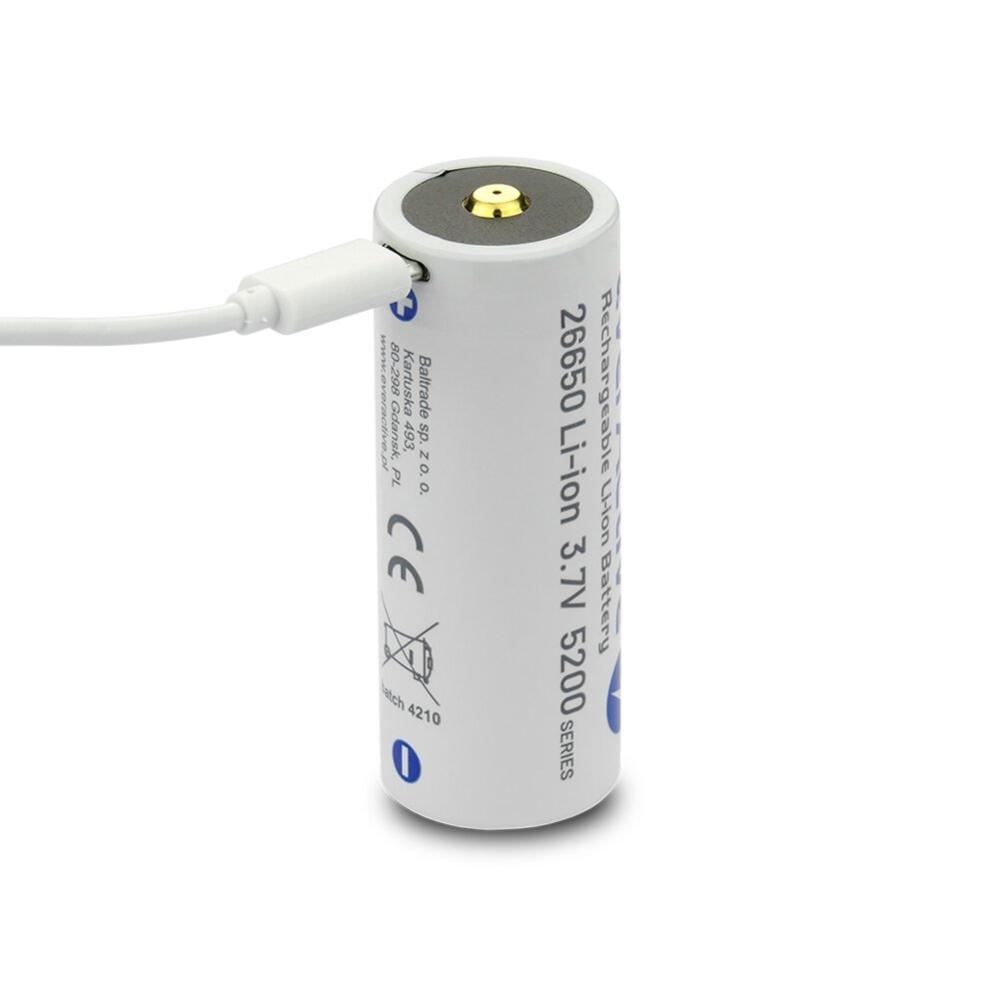 26650 Li-Ion 3.7 volt batteri med inbyggd ladd- och skyddskrets. Avsedd för ficklampor, sensorer, etc. Batteriet har ett micro-USB ladduttag och laddas direkt från USB-laddare (ingår ej). USB-laddkabel medföljer. LED på batteriets topp indikerar när laddning pågår och när laddningen är avslutad. Batteriet klarar konstant urladdning med 8 A.