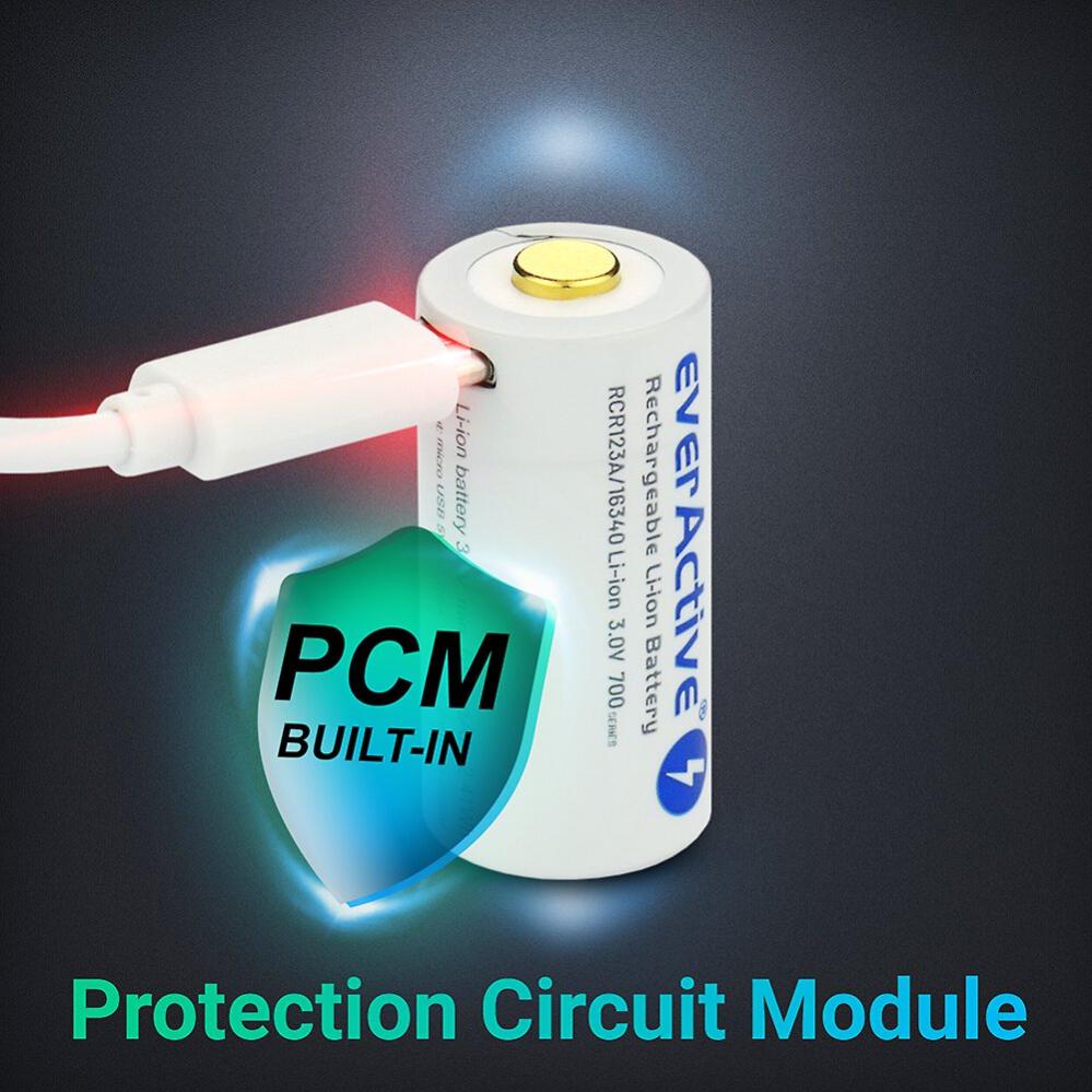 CR123A Li-Ion 3 volt batteri med inbyggd ladd- och skyddskrets. Avsedd för kameror, brandvarnare, larmdetektorer, medicinsk utrustning, etc. Batteriet har ett micro-USB ladduttag och laddas direkt från USB-laddare (ingår ej). USB-laddkabel medföljer. LED på batteriets topp indikerar när laddning pågår och när laddningen är avslutad. Batteriet klarar konstant urladdning med 1 A.