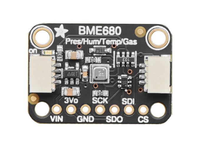Miljösensormodul, ett breakout-kort med sensorn BME680 från Bosch. Kombinerar mätning av temperatur, luftfuktighet, barometertryck och flyktiga organiska föreningar (VOC) i en kompakt modul. Sensorn kan användas för luftkvalitetsmätning, väderstationer, höjdberäkning och övervakning av inomhusmiljö i både prototyper och färdiga system.