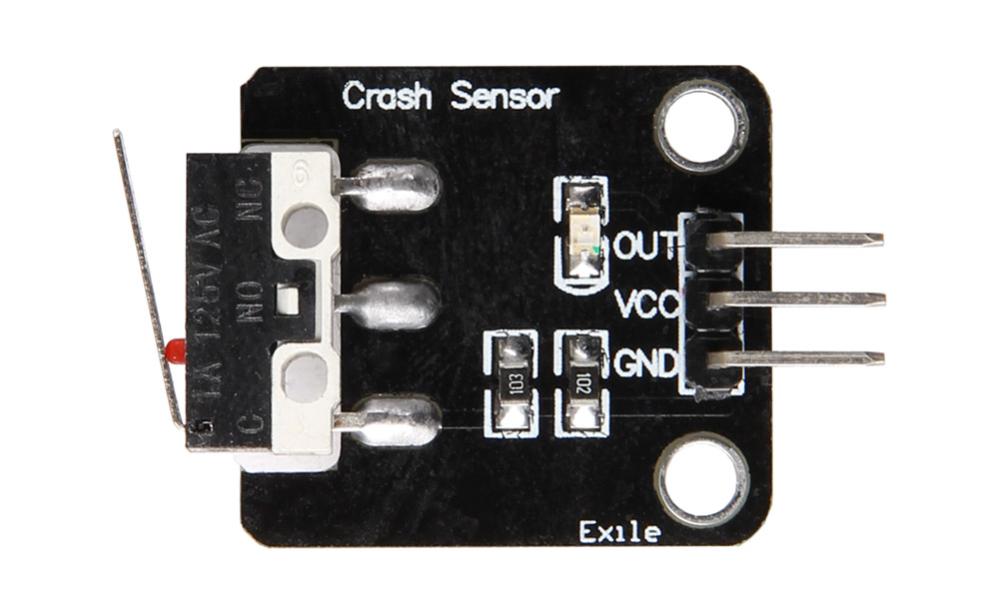 - Sensorn består av en mikrobrytare reagerar på tryck. När armen trycks in sluts kontakten och en digital signal skickas på utgången