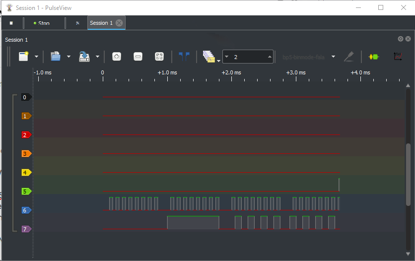 Version 6 bygger på RP2350B, vilket ger högre klockfrekvens, mer RAM-minne och framför allt en ny funktion: Follow Along Logic Analyzer. I detta läge (FALA) kan logikanalysatorn triggas varje gång ett Bus Pirate skickar kommandon, utan att man behöver ställa in triggers. Så fort något händer på bussen skickas samplingarna till datorn, och man kan enkelt zooma och gå bakåt i historiken.