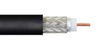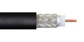 LMR195 koaxialkabel för kommunikationsradio med samma ytterdiameter som RG58, men i lågförlustutförande. Dubbelskärmad, aluminiumfolie + förtennt koppar, mittledare av kopparöverdragen aluminium (CCA) och dielektrikum av PE-skum. Ytterhölje av svart PVC.