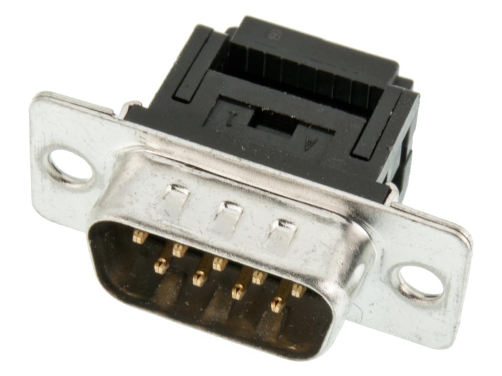 D-SUB 9 pol IDC-kontakt för krimpning på flatkabel (bandkabel). Lämpligt verktyg för krimpning: 41003882.