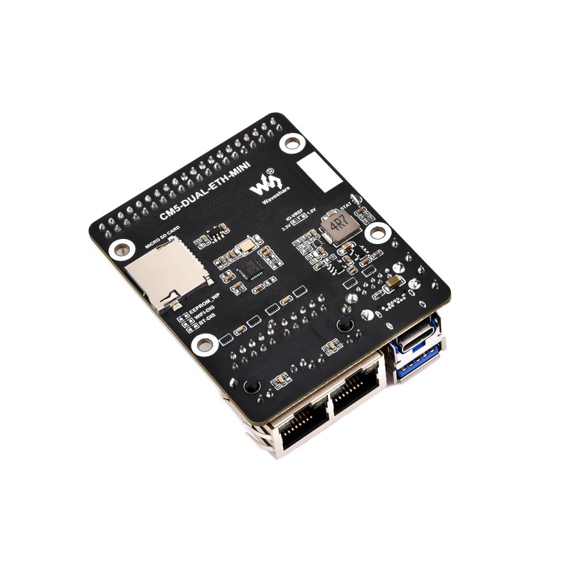 Dual Gigabit Ethernet Base Board för Raspberry Pi Compute Module 5. Ett kompakt IO-basboard avsett för utvärdering, prototyper och integrering av Raspberry Pi Compute Module 5. Kortet ger nödvändiga gränssnitt för nätverk, USB, GPIO och lagring i en liten formfaktor, vilket möjliggör användning som mini-nätverksplattform eller inbyggd dator i applikationer där dubbel nätverksanslutning och expansion önskas.