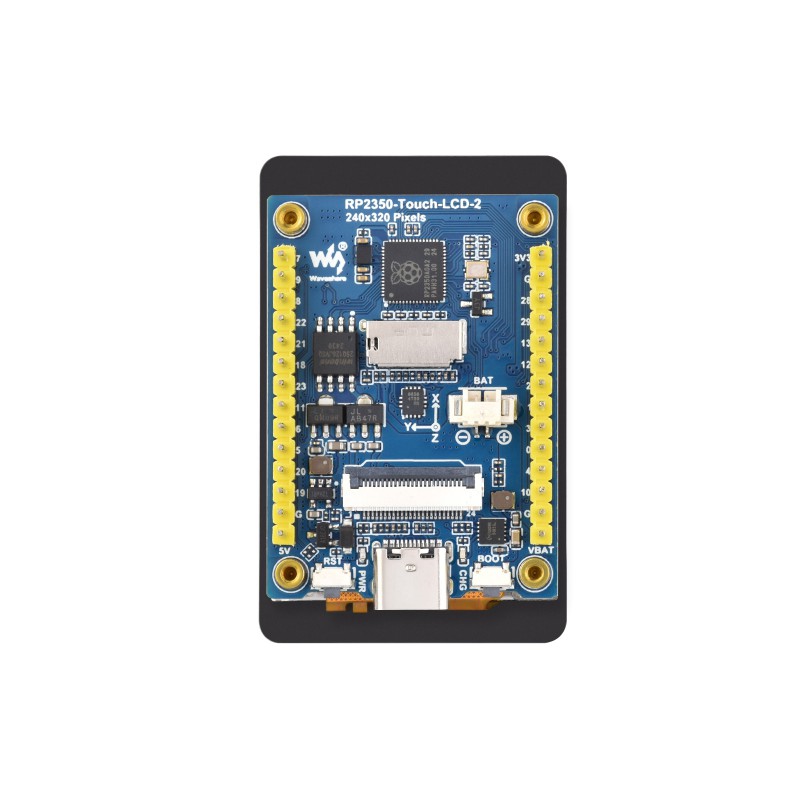 RP2350 Touch LCD 2 is a high-performance development board based on the Raspberry Pi RP2350. The board is designed for embedded systems and HMI applications where both graphics and interaction are required. The integrated 2-inch capacitive touchscreen enables development of custom user interfaces directly on the hardware without external modules.