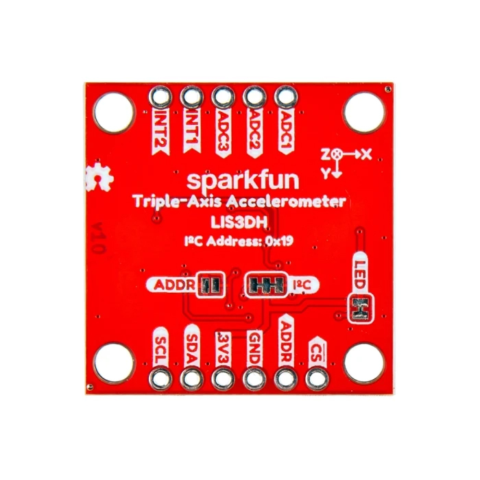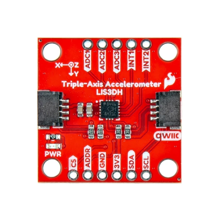 3-axis accelerometer with the LIS3DH IMU sensor. A compact Qwiic-enabled accelerometer board for measuring motion, tilt, and vibration in three axes. The board is based on the LIS3DH, which is a low-power capacitive MEMS accelerometer with 12-bit resolution and built-in features for motion detection, orientation, and tap events. This makes it suitable for both prototypes and embedded systems.