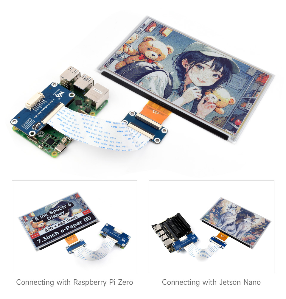 - 7.3-inch e-ink display with e-Paper Driver HAT