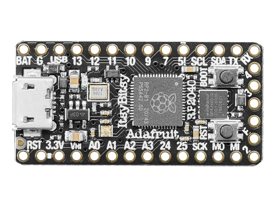 - Dimensions: 36 × 18 × 4 mm (same as other ItsyBitsy boards)