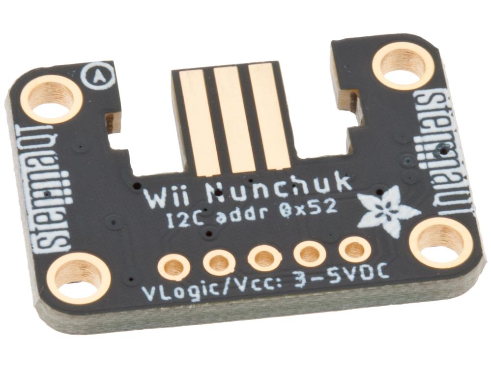Dig out that old Wii controller and use it as a sleek controller for your next robot if you like. The Adafruit Adafruit Wii Nunchuck Breakout Adapter fits snugly into the Wii connector, and performs the level shifting and power regulation needed to use the controller with any microcontroller or microcomputer.