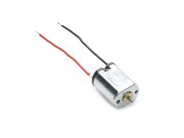 This is a small toy DC motor with about 29.5mm long leads. It has a small circular shaft which measures about 2.8mm long.