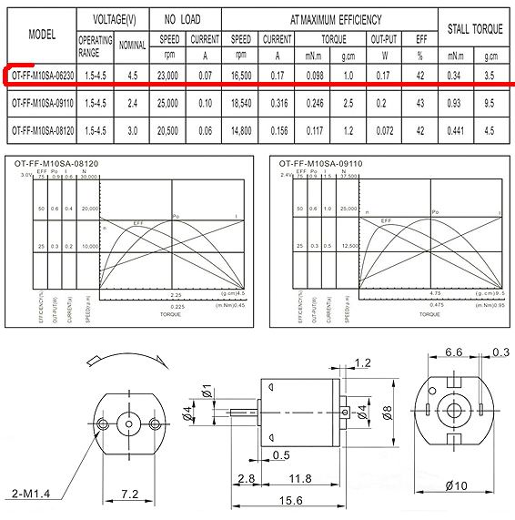 The motor has an operating voltage range of 1.5 to 4.5VDC and a no load speed of 23000 RPM (@4.5VDC, 70mA). More information is available in the spec sheet linked below.