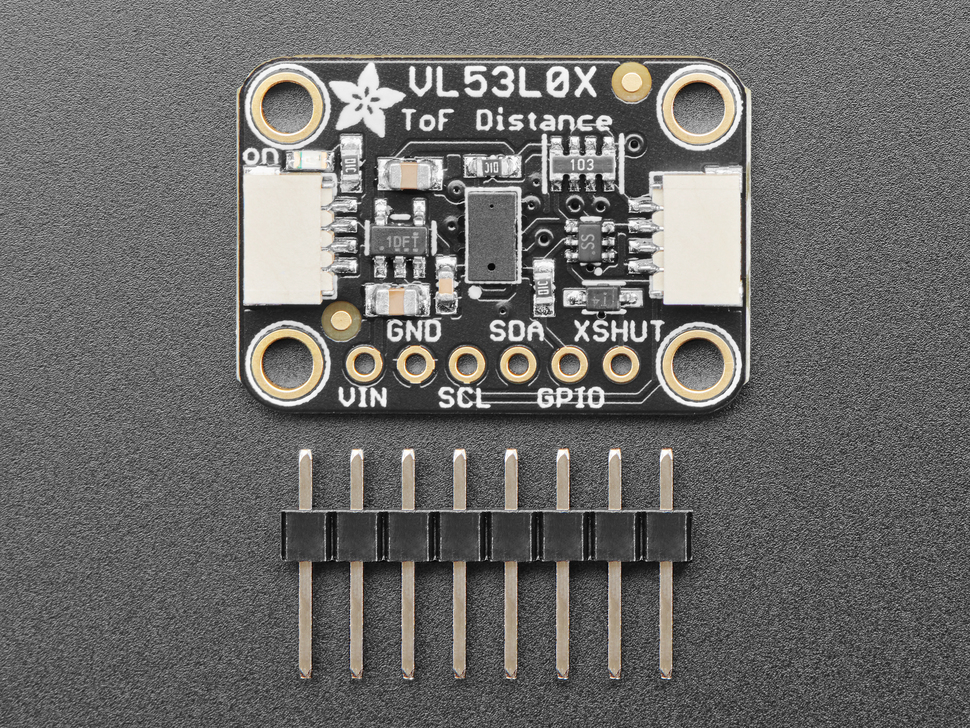 VL53L0X Time of Flight Distance Sensor is a breakout board for precise distance measurement using laser technology. The sensor uses the Time-of-Flight principle where the time of reflected light from the object in front of the sensor is measured. This provides more stable and accurate measurement than traditional IR sensors and a narrow sensing angle suitable for applications where only the area directly in front of the sensor should be detected.