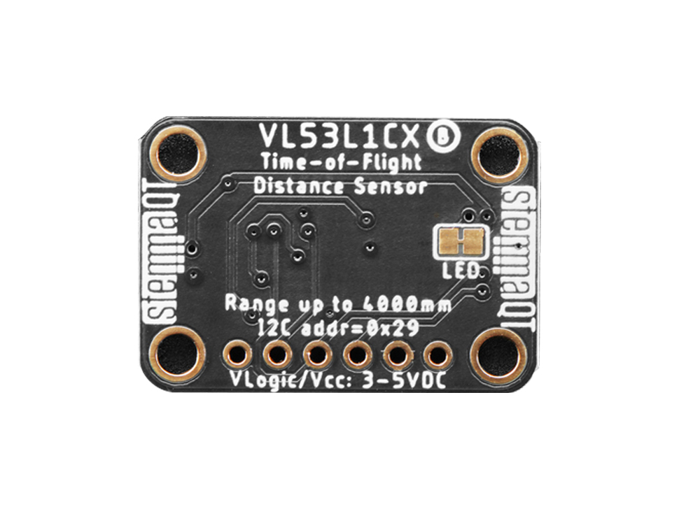 VL53L1X is the next generation of ST's FlightSense sensors and offers an update rate of up to 50 Hz for fast response. The sensor uses I2C communication and works with many microcontroller systems such as Arduino, ESP32, and Raspberry Pi. A built-in regulator and level shifting make the module compatible with both 3.3 V and 5 V logic systems.