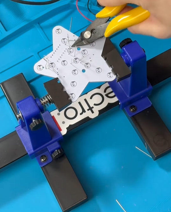 Handy holder / vice for circuit boards. The arms are adjusted to fit the board and can then be securely fastened. Boards up to 130mm can swivel 360 degrees. Maximum board size is approximately 250mm.