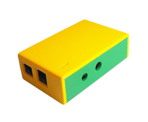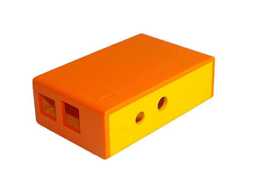 Enclosure for Raspberry Pi in high gloss plastic. The enclosure consists of two parts (top and bottom, each sold separately) and is available in many happy colors that can be combined as you like. The assembly requires no screws, everything just snaps together. Rubber feet and LED light-pipe are included.