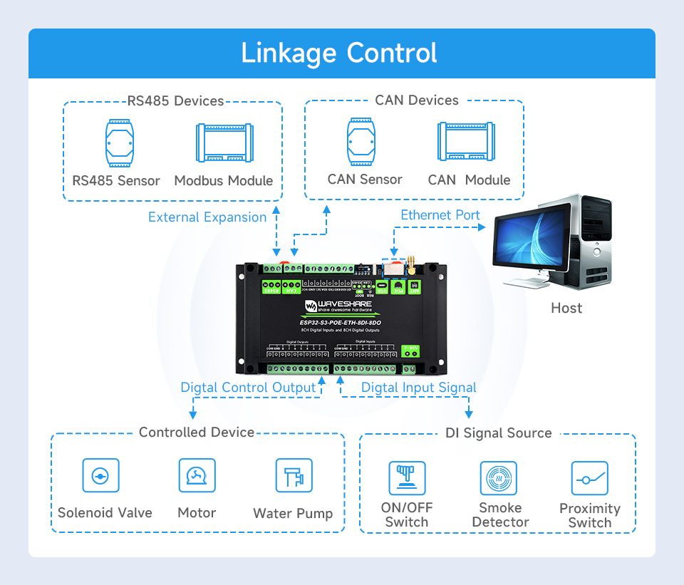 - Digital inputs: 8 channels, support for passive/active (NPN/PNP)