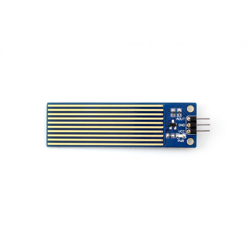 Liquid level sensor with analog output that measures the liquid level by increasing the module output signal with immersion depth. The sensor is intended for vertical installation in containers or systems where liquid levels up to approximately 48 mm need to be detected. It is easy to integrate with microcontrollers. Suitable for applications such as water level alarms or liquid monitoring in projects and automation.