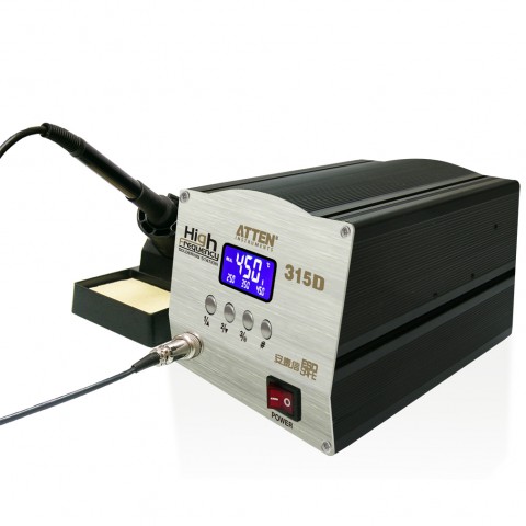 AT315D soldering station is a high-power one with high frequency eddy current heating. It is especially suitable for soldering multilayer PCB, high-frequency shielded shell and high temperature soldering.