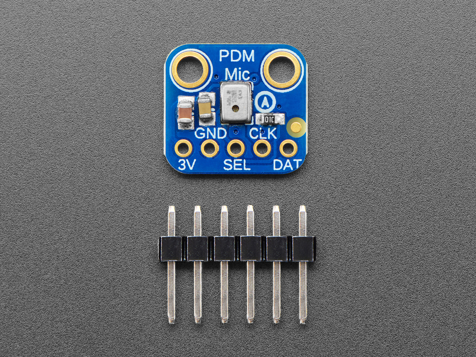 The breakout board is populated with the MP34DT01-M microphone IC and is delivered fully assembled. The product includes a pin header (not soldered) for use with, for example, breadboards. With low power consumption and broad support for platforms such as Arduino and CircuitPython, the module is suitable for everything from sound detection and data acquisition to voice control and IoT applications.