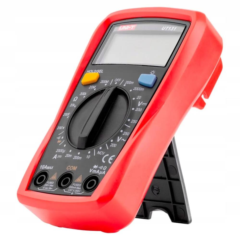 Digital multimeter for measuring AC and DC voltage, DC current and resistance. Continuity test with buzzer. Diode test. The instrument has a built-in sensor at the front for non-contact voltage testing (230 VAC). Backlit LCD display. Automatic off function that can be disabled if desired. With the Hold function, measured values can be frozen in the display. Supplied with test leads. Powered by 2x AAA batteries (not included).