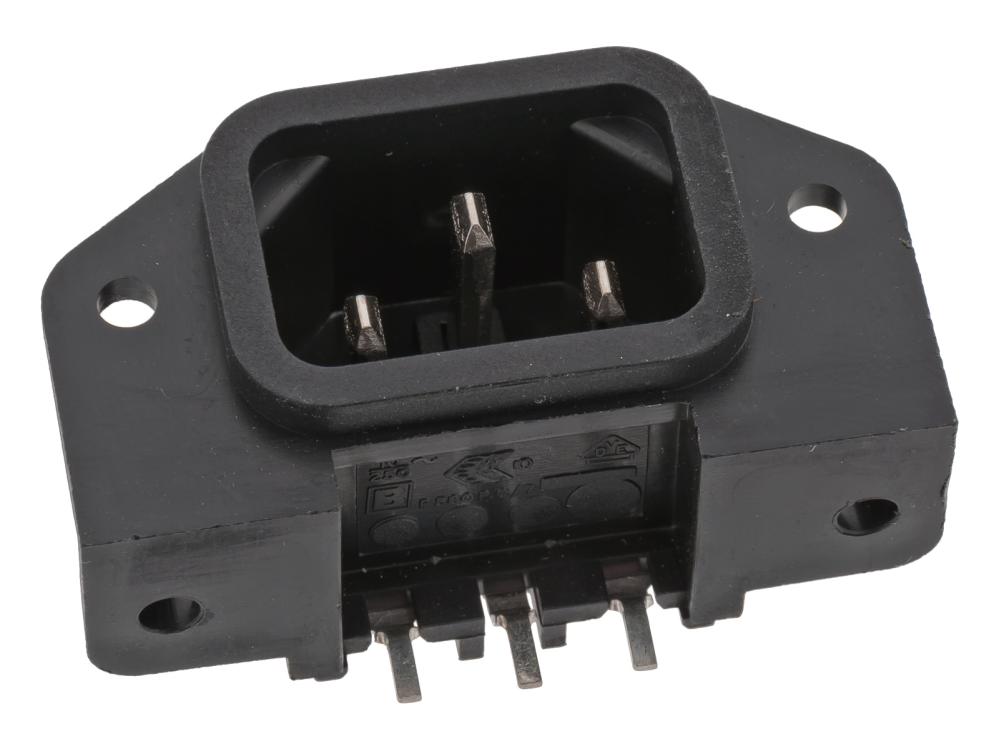 Mains inlet IEC C14 10A 250VAC PCB angled