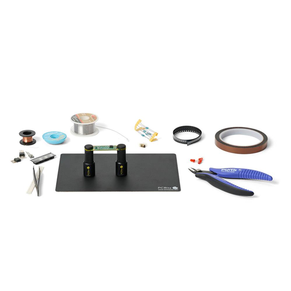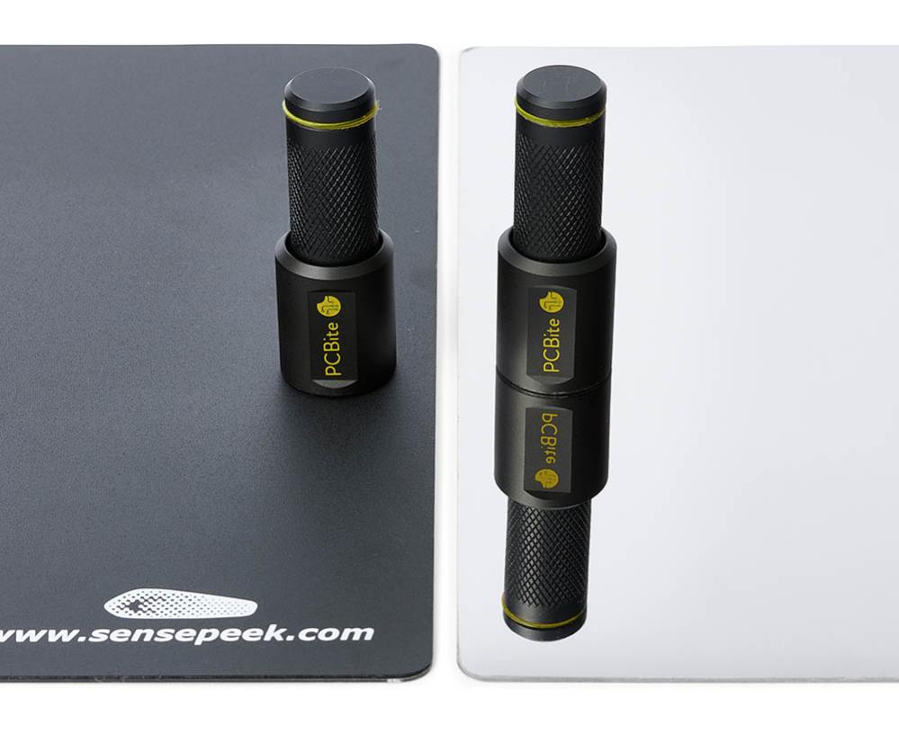 PCBite Kit S Insulated is a precision tool for holding circuit boards in place during soldering, testing, and inspection. Kit S uses a compact A5-sized base plate, making it suitable for smaller workspaces. This version includes an insulation sheet for the base plate, providing increased safety on the work surface. The holders are magnetic and can be positioned freely on the base plate, allowing you to adjust and secure the circuit board using a spring-loaded jaw. The base plate has two surfaces: one mirror-polished and one matte.
