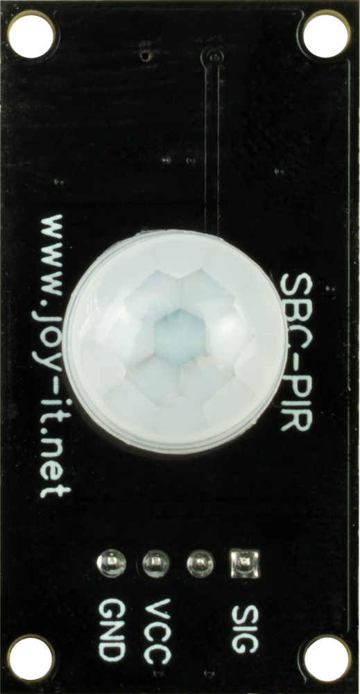 PIR motion sensor used to detect movement via changes in infrared radiation. The module is based on a pyroelectric sensor with a Fresnel lens that registers motion within the detection area. Provides a digital output when motion is detected. The sensor has adjustable range set via a potentiometer. The module is suitable for security systems, presence detection, and automation together with a microcontroller.