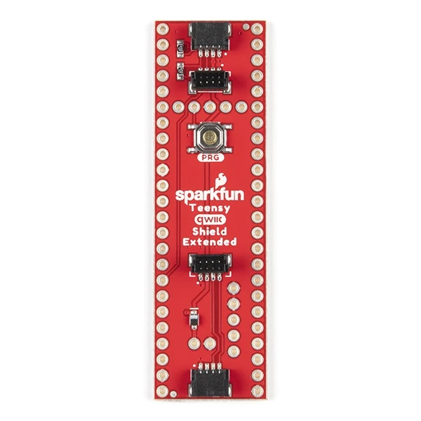 Qwiic Shield for Teensy. An expansion board that allows Qwiic-compatible devices to be connected to Teensy boards via I2C. The board breaks out the I2C bus (GND, 3.3 V, SDA and SCL) to four Qwiic connectors, simplifying the connection of sensors and modules without the need for soldering between devices.