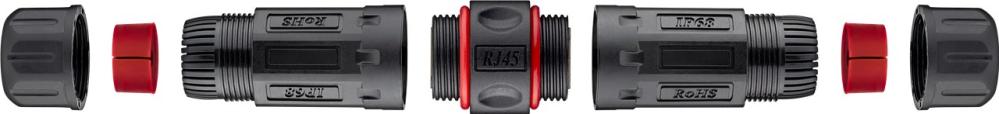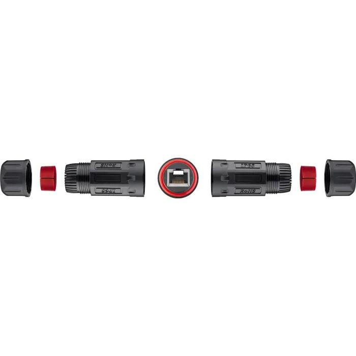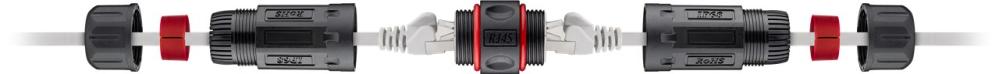 Outdoor coupler (IP68) for cat6 U/UTP patch cable with RJ45 connectors. For in-ground installation, additional protection with vulcanizing tape is recommended.