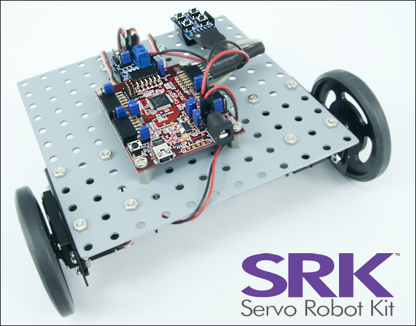 The Digilent Servo Robot Kit (SRK) provides the perfect starting point for those new to robotics, but has the power to be used for advanced designs and applications as well. The SRK pairs our powerful Cerebot MX3cK microcontroller development board with a rugged steel platform and all the motors, wheels, and other parts needed to build a complete robot. Using your SRK's powerful Cerebot MX3cK microcontroller, you'll be able to add all sorts of functionality to your robot. Add some of our extensive line of peripheral modules (Pmods) and you can design almost anything!