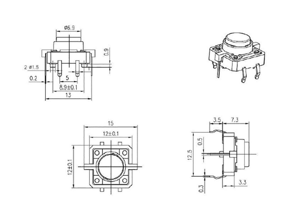 Shop this product, Tactile switch PCB 12x12x7mm LED green