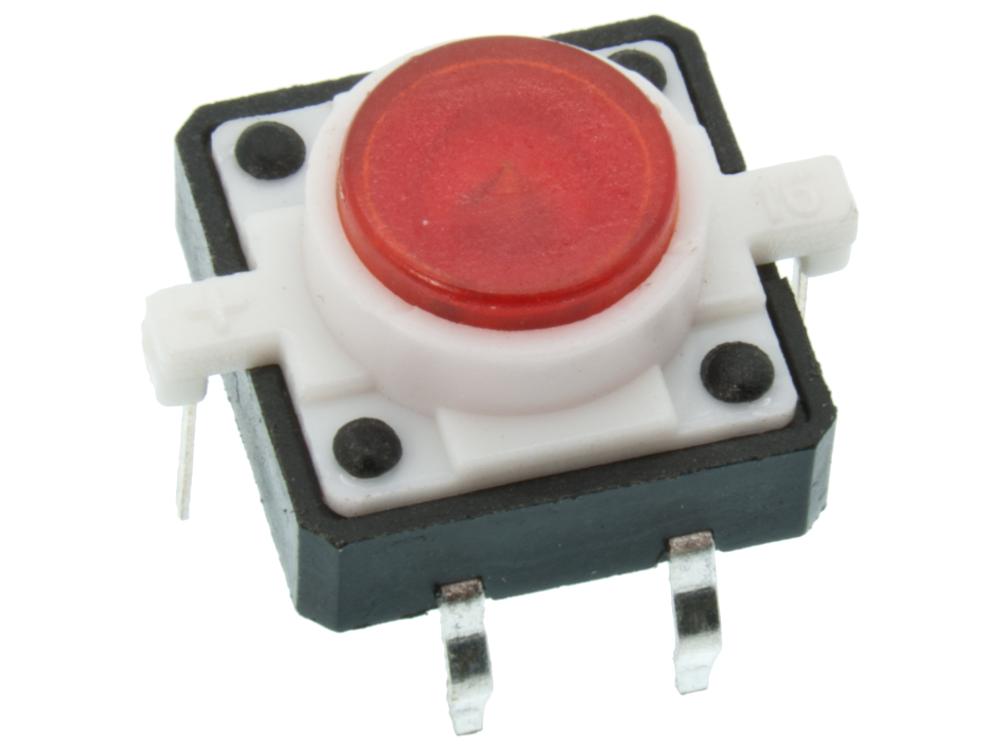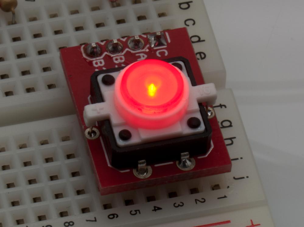 This is a simple LED-illuminated tactile button with a clear cap. It's just like a basic tactile button, but it lights up white! So now you can get visual feedback, or light up your project. These have a 12mm body and are rated for 50mA. They don't easily fit into a breadboard, but check below for a breakout board. We also have these in a a variety of colors, check below to see the others.