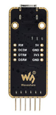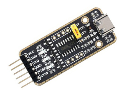 - Connections (6-pin): VCC (3.3 or 5 V), GND, TXD, RXD, RTS, CTS