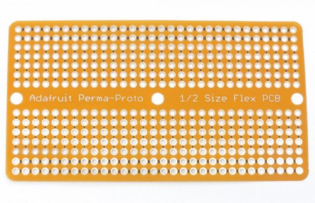Experimentkort tillverkat i extremt tunn och böjbar polyimidfilm. Kortet kan enkelt klippas med sax och används för att löda komponenter i flexibla prototyper. Det har en böjradie på minst 10 mm och kräver mekaniskt stöd vid lödning, eftersom det inte håller sig plant av sig självt.