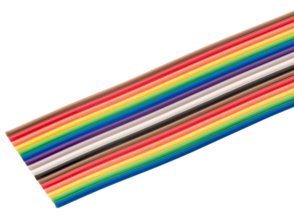 Flerfärgad bandkabel (flatkabel) med 1,27 mm ledaravstånd. En flexibel lösning för interna förbindelser mellan kretskort (PCB) i inbyggda elektroniska system. Kabeln kan enkelt delas på längden om en smalare kabel med färre ledare önskas.