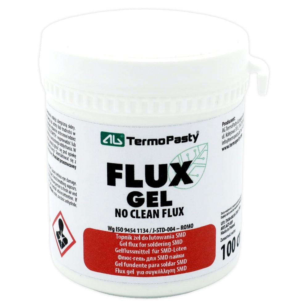 TermoPasty Flux Gel - Flussmedel 100 ml (100 cm²). Flux Gel är ett flussmedel i gelform, vilket möjliggör exakt applicering utan avrinning. Flussmedlet ger mycket god vätning av lodet och är särskilt lämpat för blyfri precisionslödning, till exempel vid arbete med SMD-komponenter.